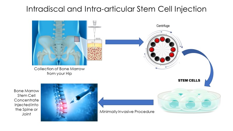 Bone marrow stem cells are precisely injected into the spine and supporting structures live X-ray guidance. These cells release bioactive proteins that initiate healing and spinal regeneration. The expected result is for pain and inflammation to gradually resolve, and the health and function of the spine improves over time.