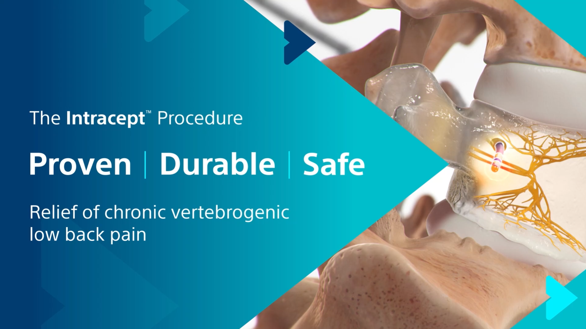 The Basivertibral procedure helps combat pain in the vertebra. The INTRACEPT procedure aims to stop pain signals from this nerve. A curved instrument is introduced into the vertebra creating a channel to the nerve to deliever heat, stopping transmission of pain.